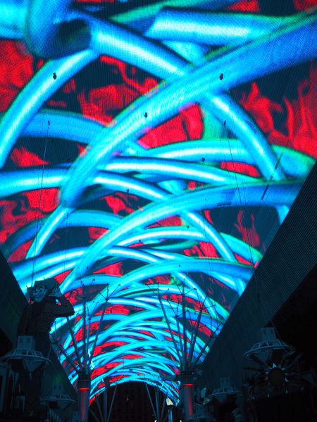 The good thing about Fremont Street, is the Fremont Street Experience where the whole roof of the covered walk way lights up, plays music and entertains the crowd for ten minutes. And there's often something going on down there like a band or street theatre.